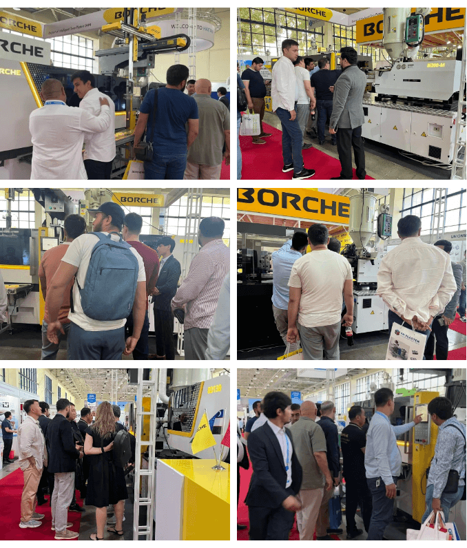 本次展會,博創帶來以全新一代直驅電動注塑機BD130為主體的水果盤注塑方案和互聯網注塑機通用型Bi200-M。其中,博創全球巡展新品BD130以全新的機器外觀亮相,成為全展館最靚的展機,吸引了許多客戶前來詢單,還吸引了中亞地區(阿塞拜疆、哈薩克斯坦、吉爾吉斯斯坦、土庫曼斯坦等)的專業觀眾駐足交流,反響非常熱烈。
